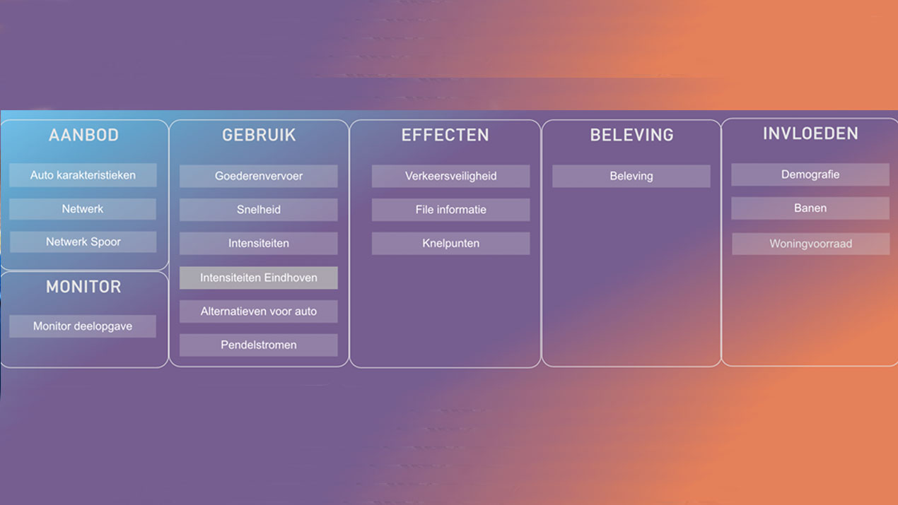 De werkgroep Monitoring en Evaluatie (M&E) van SmartwayZ.NL meet, controleert en analyseert continu het effect van mobiliteitsoplossingen op de bereikbaarheid en verkeersdoorstroming in Zuid-Nederland. De instrumenten en tools die de werkgroep M&E hiervoor gebruikt, zijn nu verzameld in een overzichtelijke toolbox.